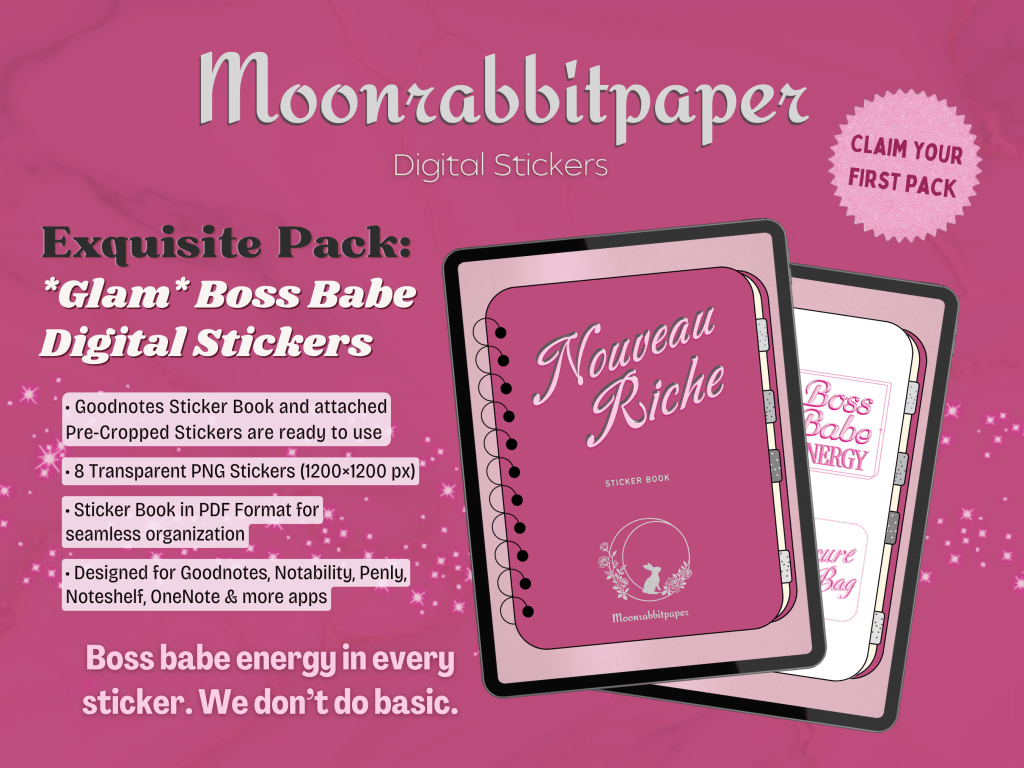 Whether you’re a Goodnotes girly or using Noteshelf, these premium digital stickers are pre-cropped and crisp. Drop them into your sophisticated planner and instantly elevate your layout.